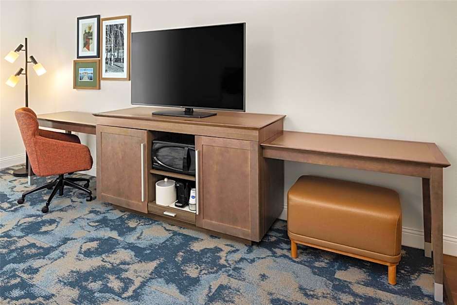 This room includes a flat-screen HDTV, microwave and refrigerator.